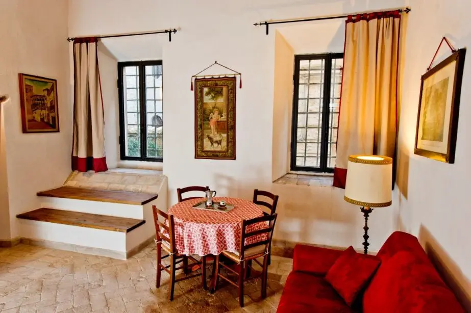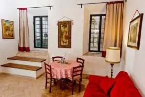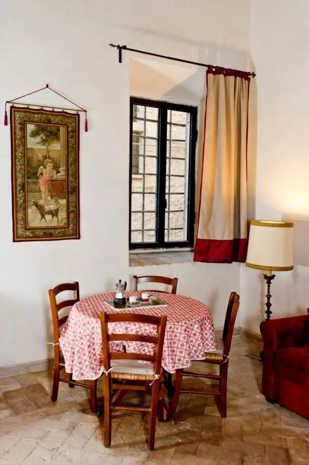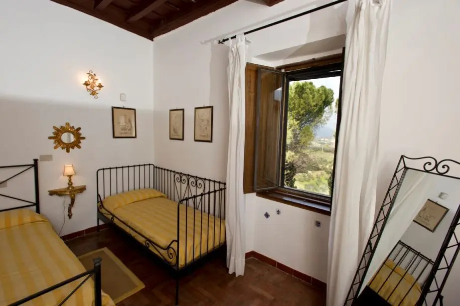 Situata nell'unità abitativa La Torre, la camera Rotonda è dotata di bagno privato e di cunina in condivisione con la camera Etnica.